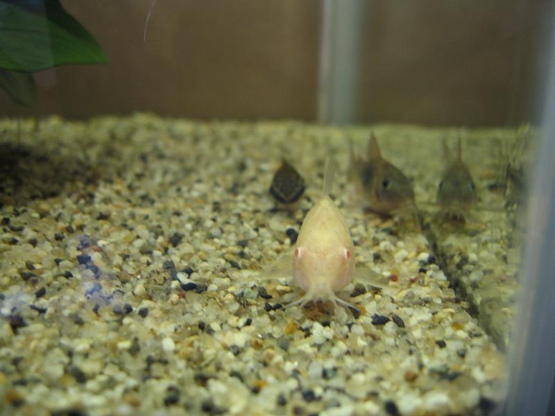 右奥のコリドラスのアルビノ個体なんですが、アルビノのくせに元気すぎるw