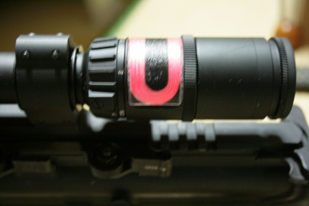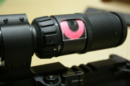 日中にココを隠すとレティクルの発光部分がくらk・・・・黒くなりました。
