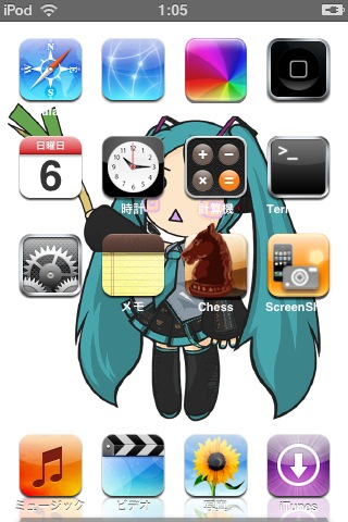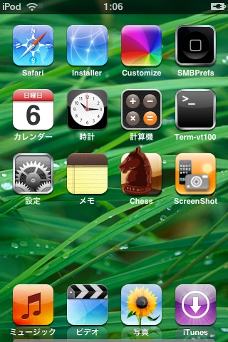 つーかれたー。iPod touchをjailbreakしてメニューの壁紙変更するまでに4時間くらいかかった気がするw